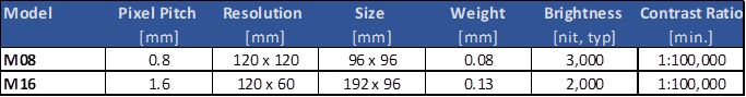 Micro LED Displays are COM (Chip on Module) technology providing the smallest pixel pitch resulting